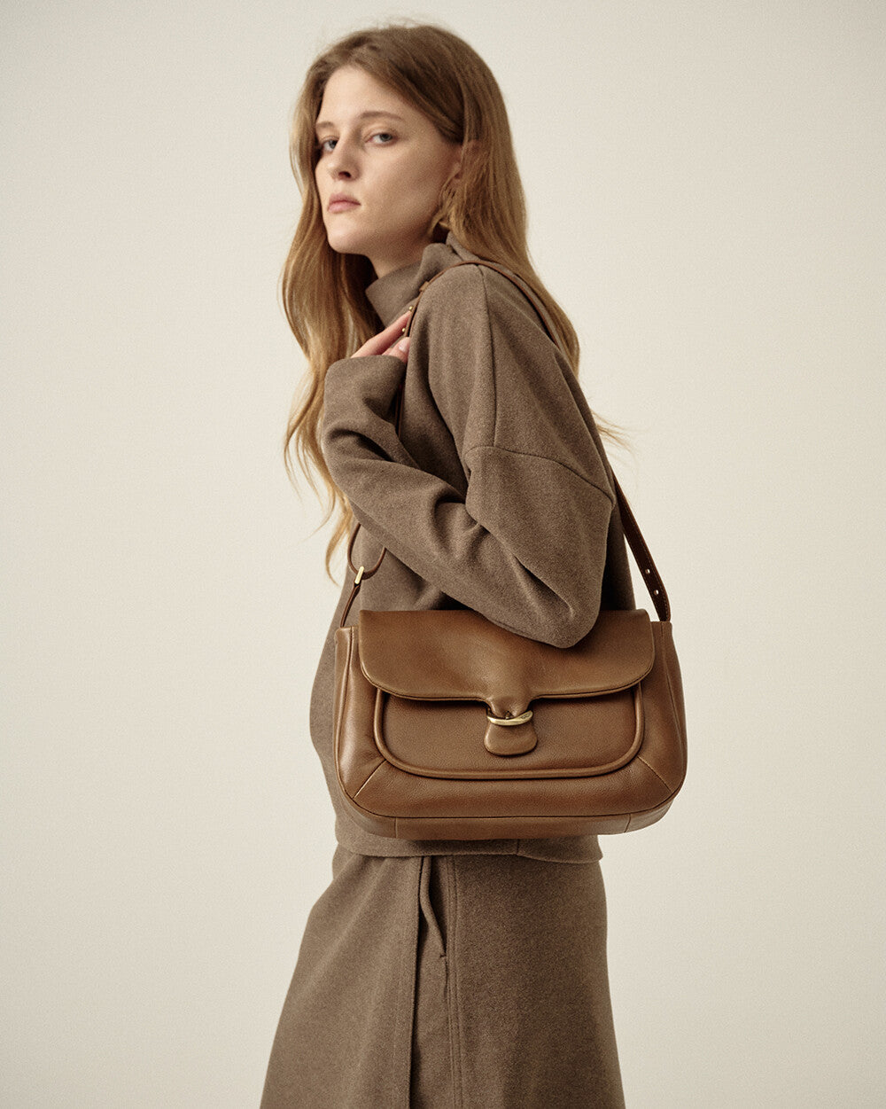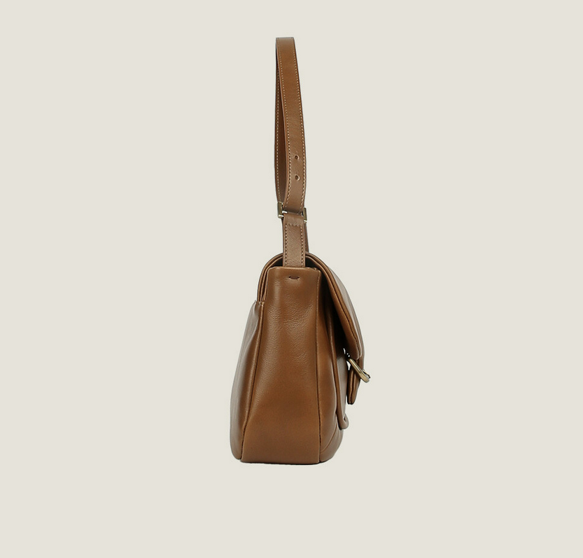 Elegant Cowhide Mailbag-Inspired Shoulder Bag