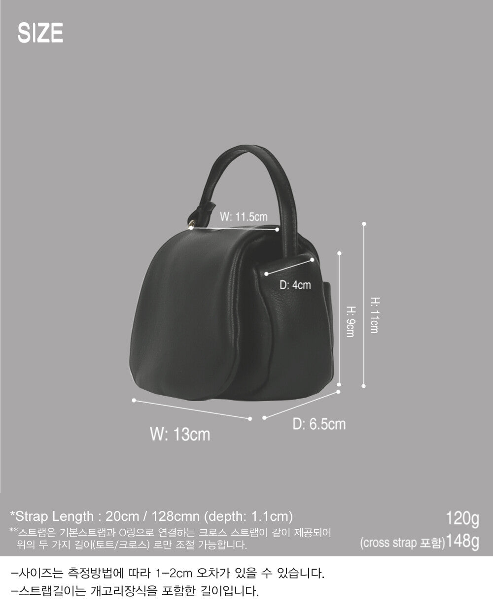 - Crossbody Strap: 128cm (Depth: 1.1cm)