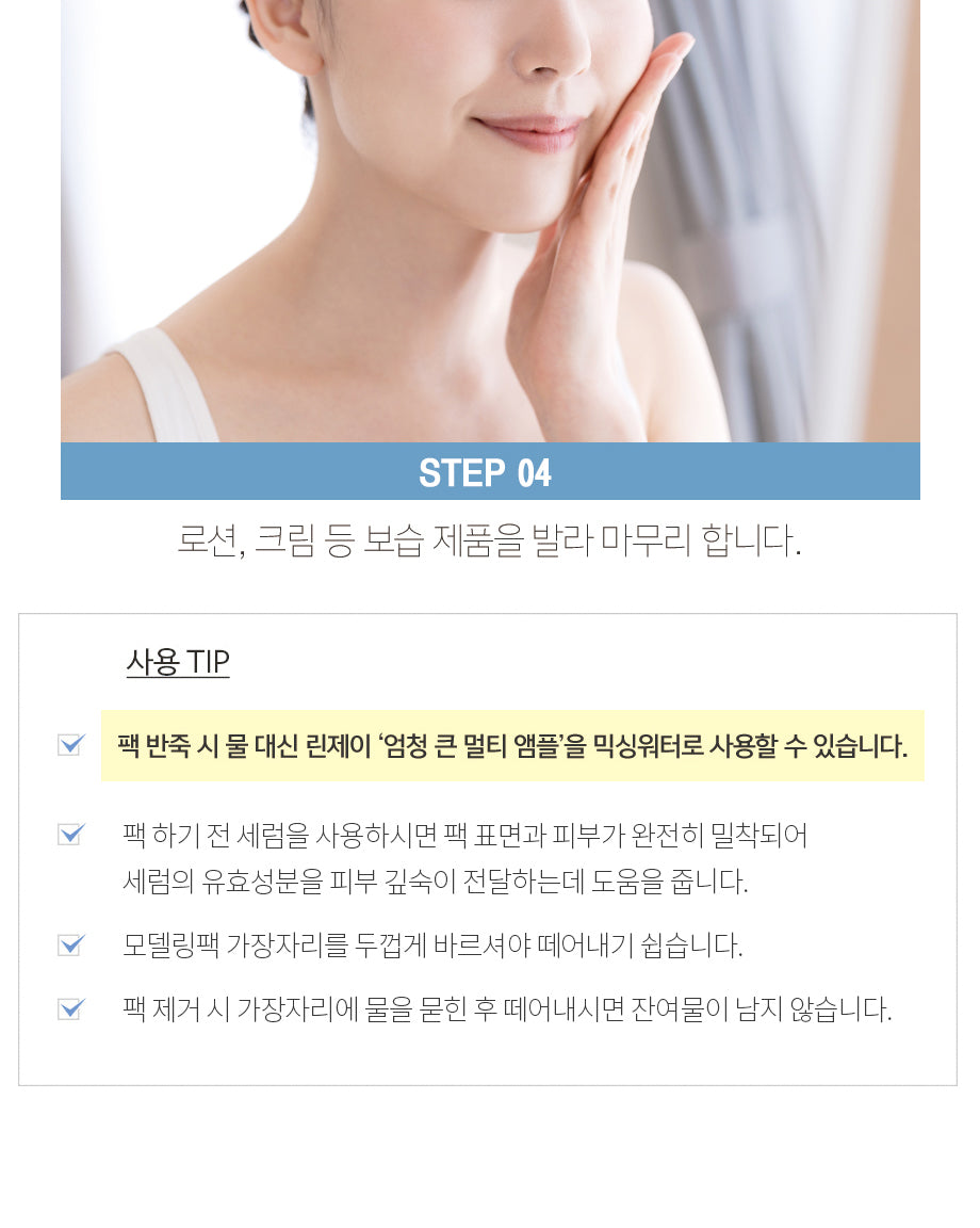 - Application: Quickly mix with a spatula, apply generously to the face, and leave for 20 minutes.
