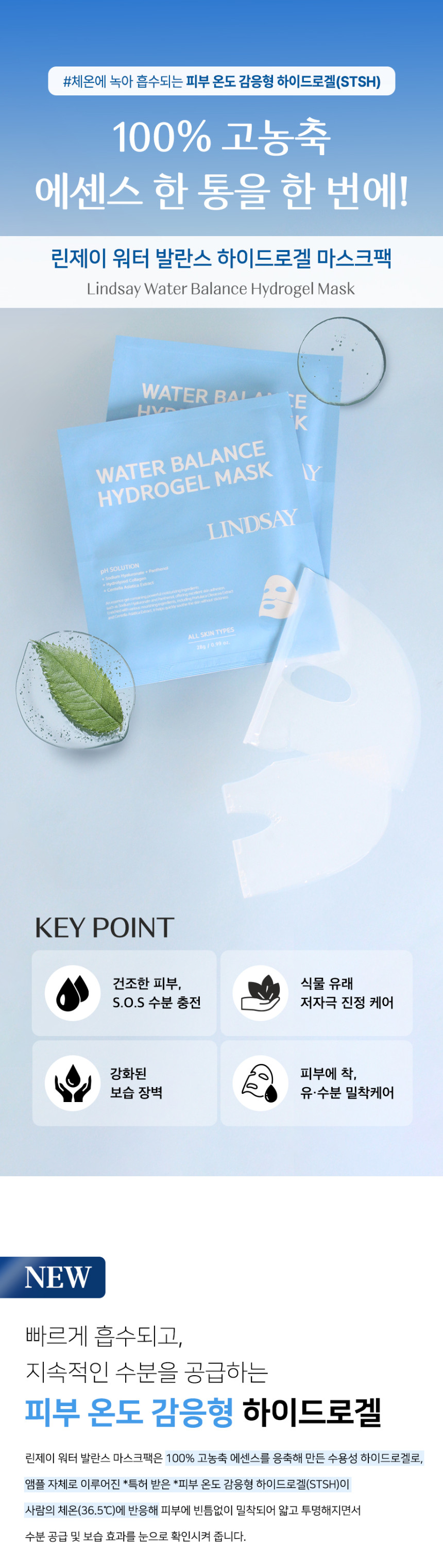 This hydrogel sheet mask offers a comprehensive skincare solution, focusing on intensive moisturization, skin calming, and balancing oil and water content.
