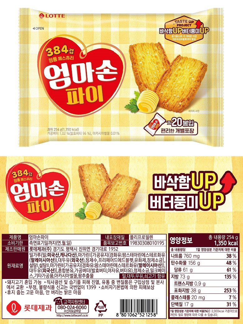 Produced by Lotte Confectionery Co., Ltd., located at 1952 Gyeonggi-daero, Jinwi-myeon, Pyeongtaek-si, Gyeonggi-do, our pies adhere to stringent quality controls. The use of polypropylene for inner packaging material ensures safety and longevity, while the expiration date is clearly marked for your assurance.