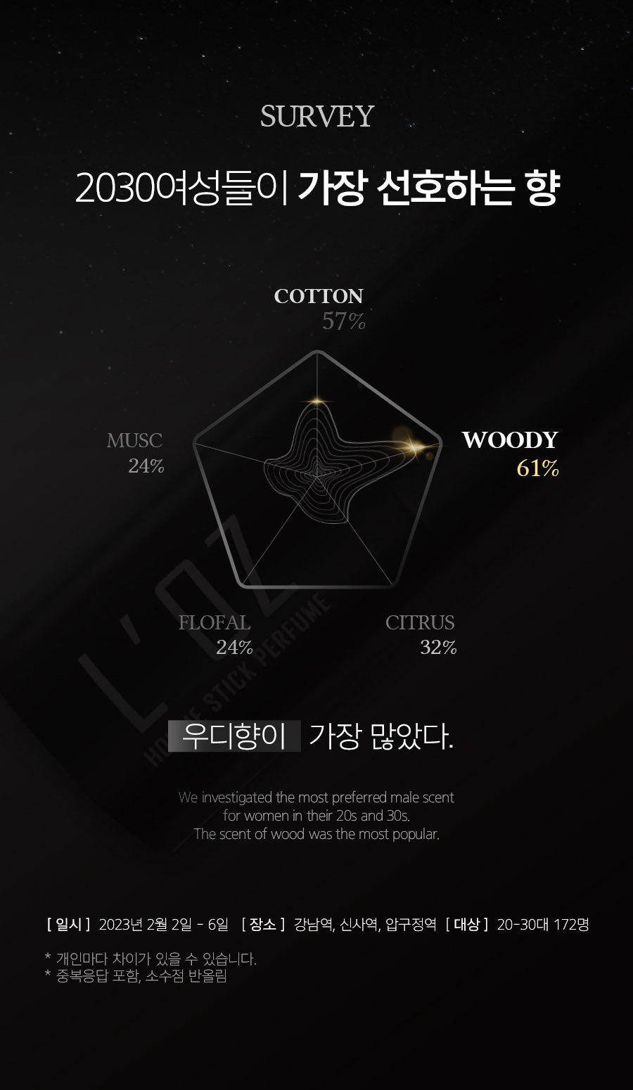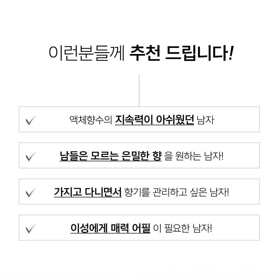 Crafted with the most preferred fragrances among women in their 20s and 30s, this stick-type men’s perfume blends soft and sexy woody notes for a scent that is both gentle and alluring.