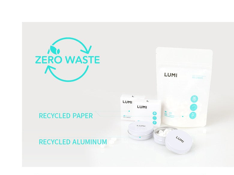 Packaged in a sleek, recyclable tin case, LUMI is as mindful of the environment as it is of your oral health. The airtight seal keeps moisture out, ensuring each tablet stays hygienic and intact—perfect for everyday use.