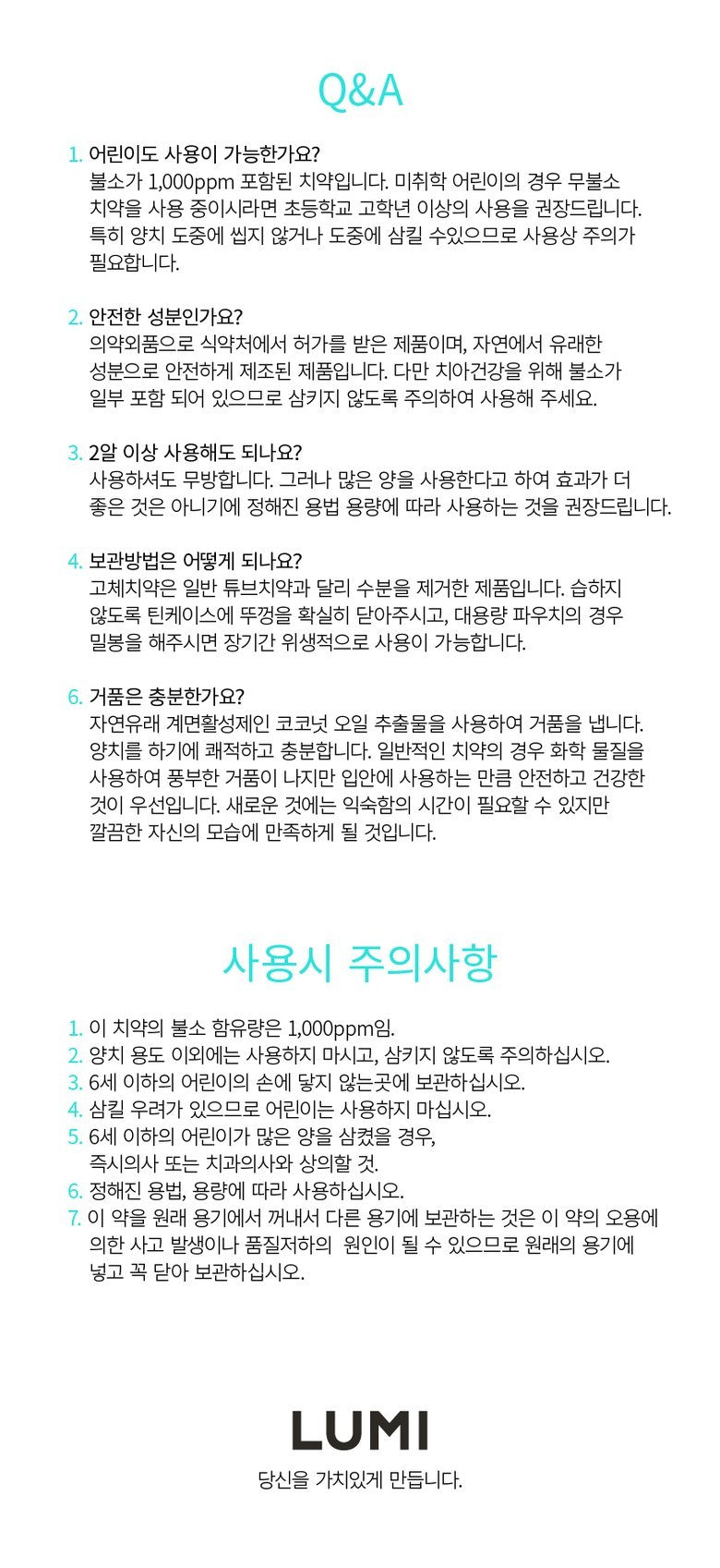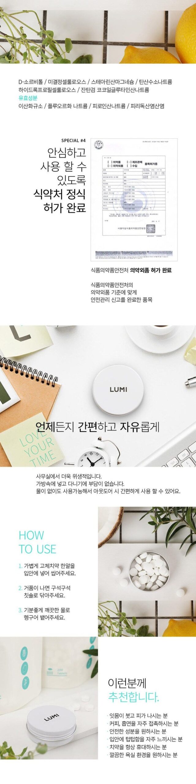 LUMI Solid Toothpaste is officially approved by Korea’s Ministry of Food and Drug Safety as a quasi-drug product. You can brush with peace of mind knowing your toothpaste meets the highest safety standards.