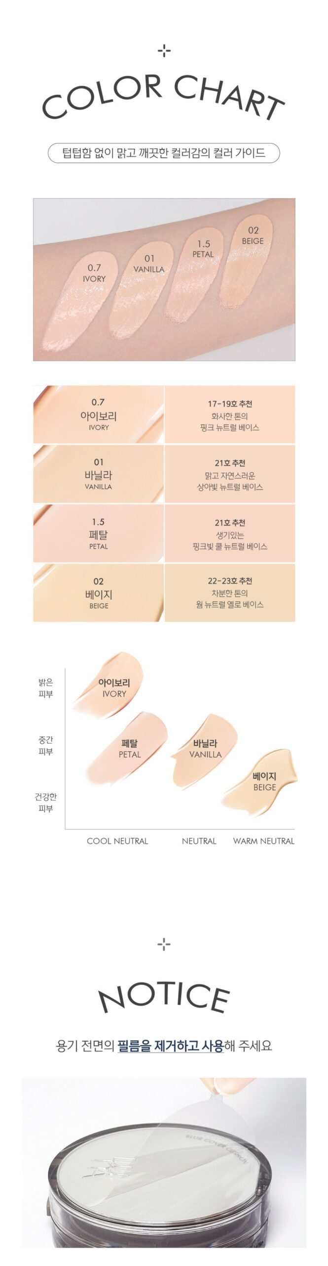 - 01 Vanilla: Clear and natural ivory with a neutral base