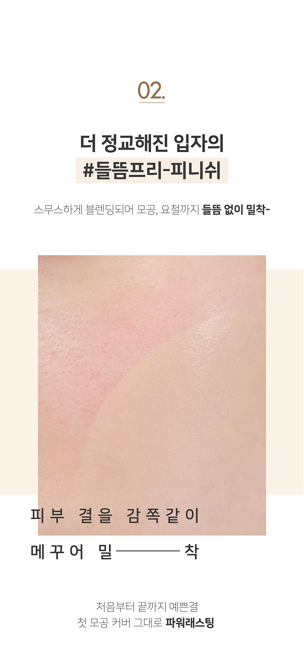 Our foundation features more refined particles, providing a non-sticky finish that adheres effortlessly without clinging. Enjoy up to 48 hours of lasting coverage with a smooth, seamless application that covers pores and imperfections.