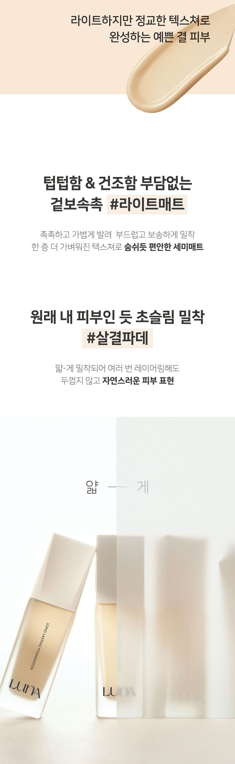 So, I just tried out the LUNA Long Lasting Foundation, and let me tell ya, it’s pretty nifty! The semi-matte finish is dope; it really lets your skin breathe while keeping everything looking polished. I usually struggle with foundations that feel heavy on my face but this one glided on so smoothly—like butter! No sticky vibes either which was a nice surprise. Seriously felt like nothing’s weighing me down during the day. Plus, it blended right in without any harsh lines or awkward patches. Perfect for those long work days when you wanna keep things fresh all night long too!
