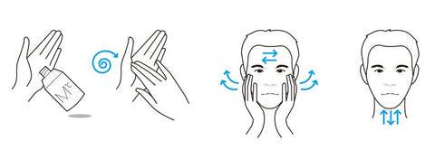 2. Take a 2cm circle size on the palm of your hand and apply evenly over the entire face and neck. Apply on the face from the inside out of the face, and on the neck from top to bottom.