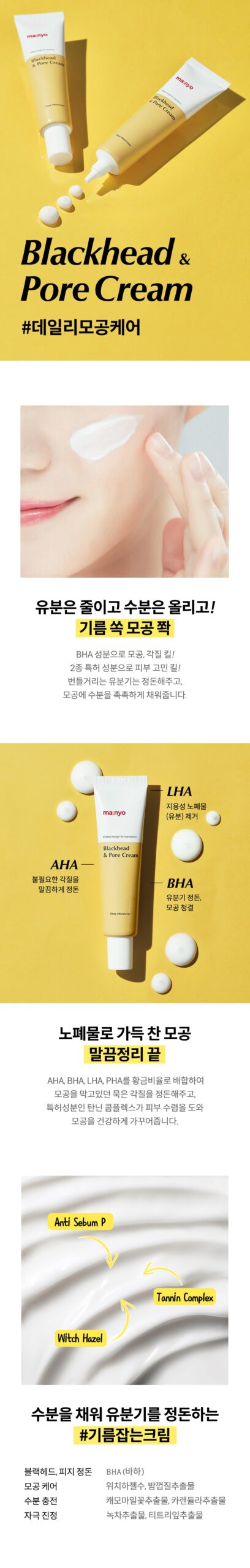 - Oil Control Cream: Say goodbye to oily skin with key ingredients like BHA for blackhead and sebum control, Witch Hazel Water, and Chestnut Shell Extract for pore care.