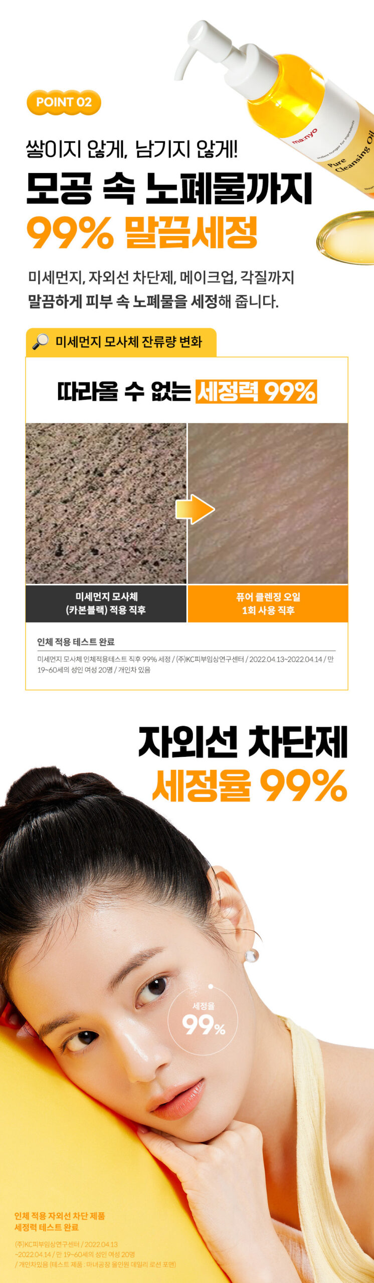 Proven to significantly reduce the residual amount of fine dust particles on the skin, our cleansing oil demonstrates a 99% cleaning efficiency. This is evidenced by human application tests, where a noticeable difference can be seen before and after a single use of the Pure Cleansing Oil.
