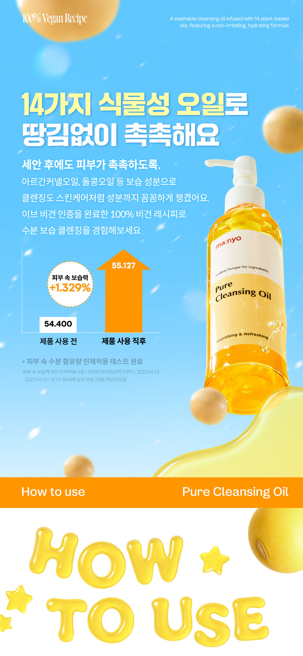 For optimal results, pump the oil onto dry hands and gently massage it over your face. Wet your hands and continue massaging until the oil turns milky, indicating that makeup and impurities have been dissolved. Rinse with lukewarm water and follow up with a foam cleanser for a thoroughly cleansed complexion. Ideal for daily use, our Pure Cleansing Oil is your go-to for effortlessly removing makeup and maintaining healthy, glowing skin.