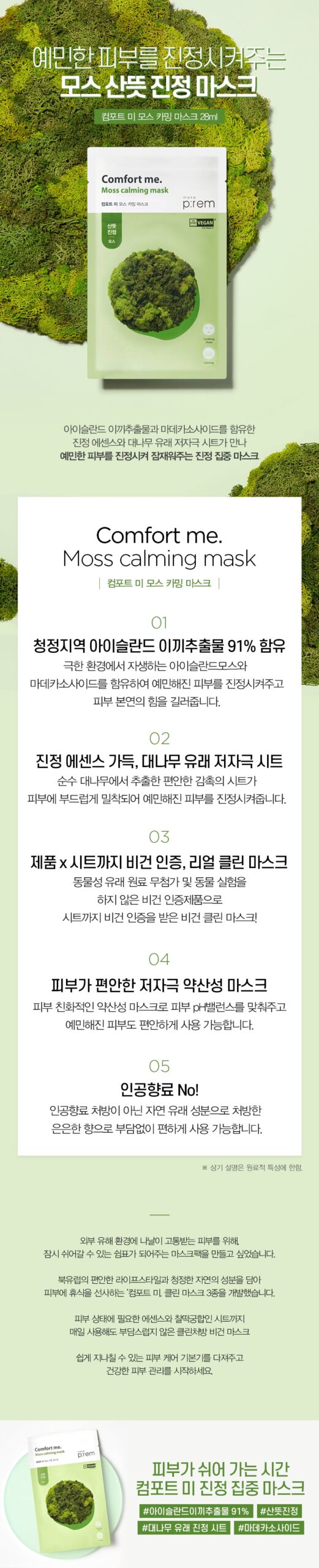 Honestly, when I first heard about the make p:rem Comfort Me. Mos Calming Mask, skepticism clouded my thoughts. How could a mere sheet mask harness something as rare as Icelandic moss to truly comfort delicate skin? After all those failed promises from other brands boasting ‘soothing properties,’ expectations remained low but curious. Yet, having dived in and immersed myself within this calming ritual—each component speaks volumes! The bamboo-derived hypoallergenic sheet snuggles warmly on your face while keeping moisture intact effortlessly without irritating my sensitive skin at all! Post-mask revelry revealed glowy freshness enveloping every pore like cool whispers of an arctic breeze over shimmering emeralds—that vegan promise too was kept impeccable with absolutely no foul scents invading its pure composition!