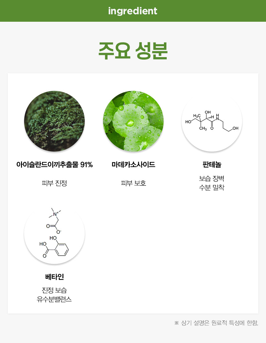 - 91% Icelandic Moss Extract: A high concentration of Icelandic moss extract known for its skin-soothing properties.