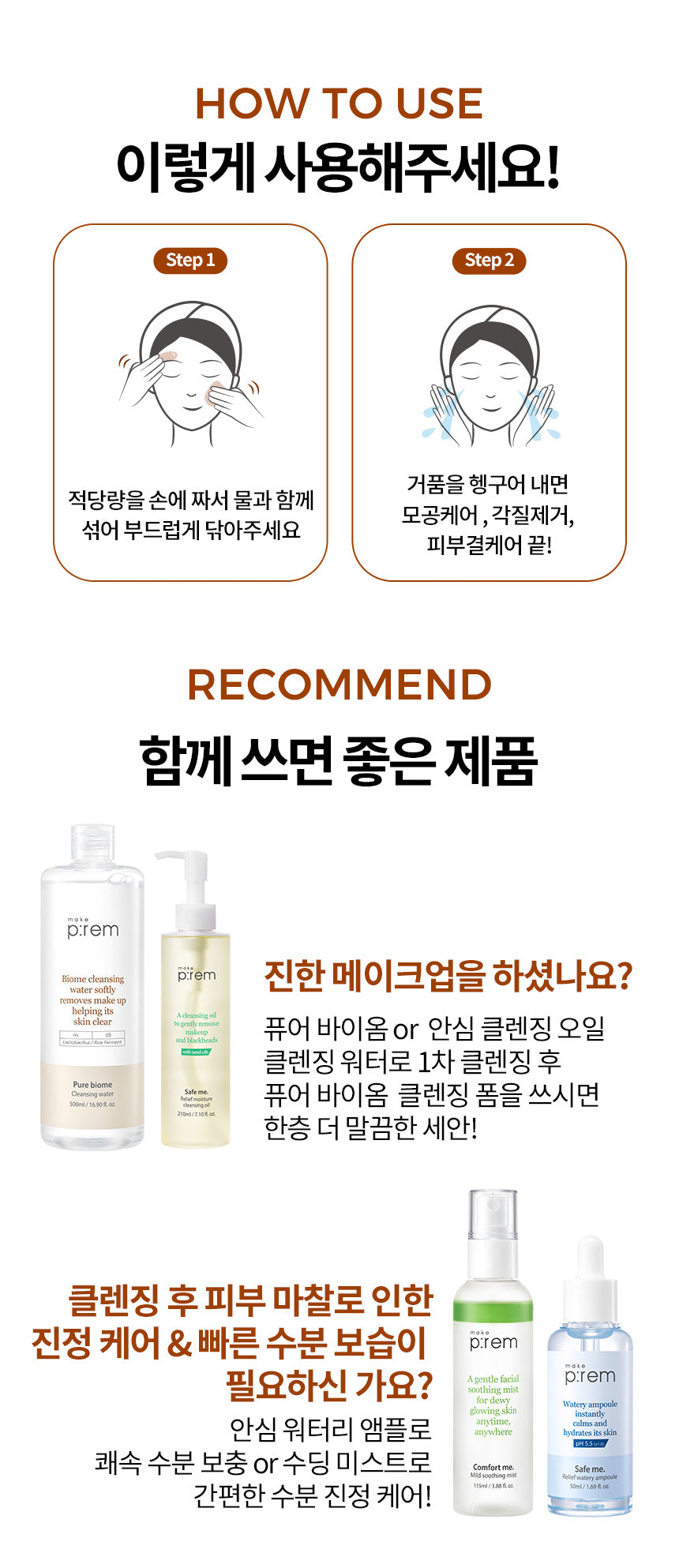 - Rinse thoroughly after gently massaging the foam onto the skin for complete pore care, dead skin cell care, and skin texture improvement.
