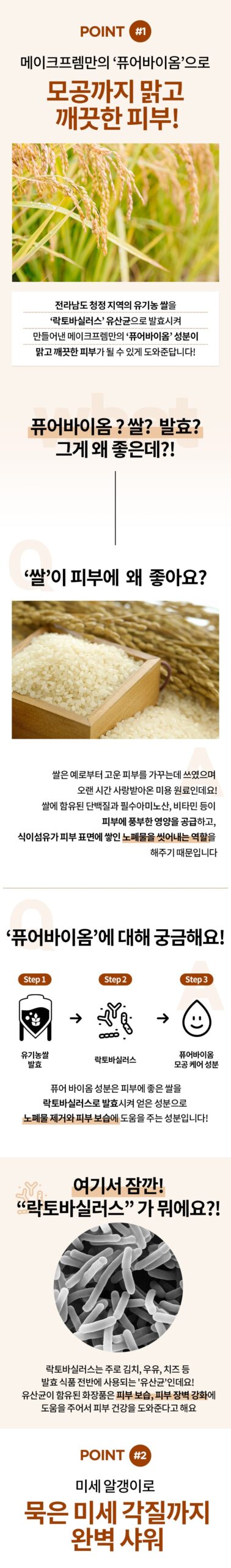 - Clear and Clean Pore Care: Utilizes the Pure Biome ingredient, a blend of organic rice fermented with Lactobacillus from Jeollanam-do, for clear and clean skin down to the pores.