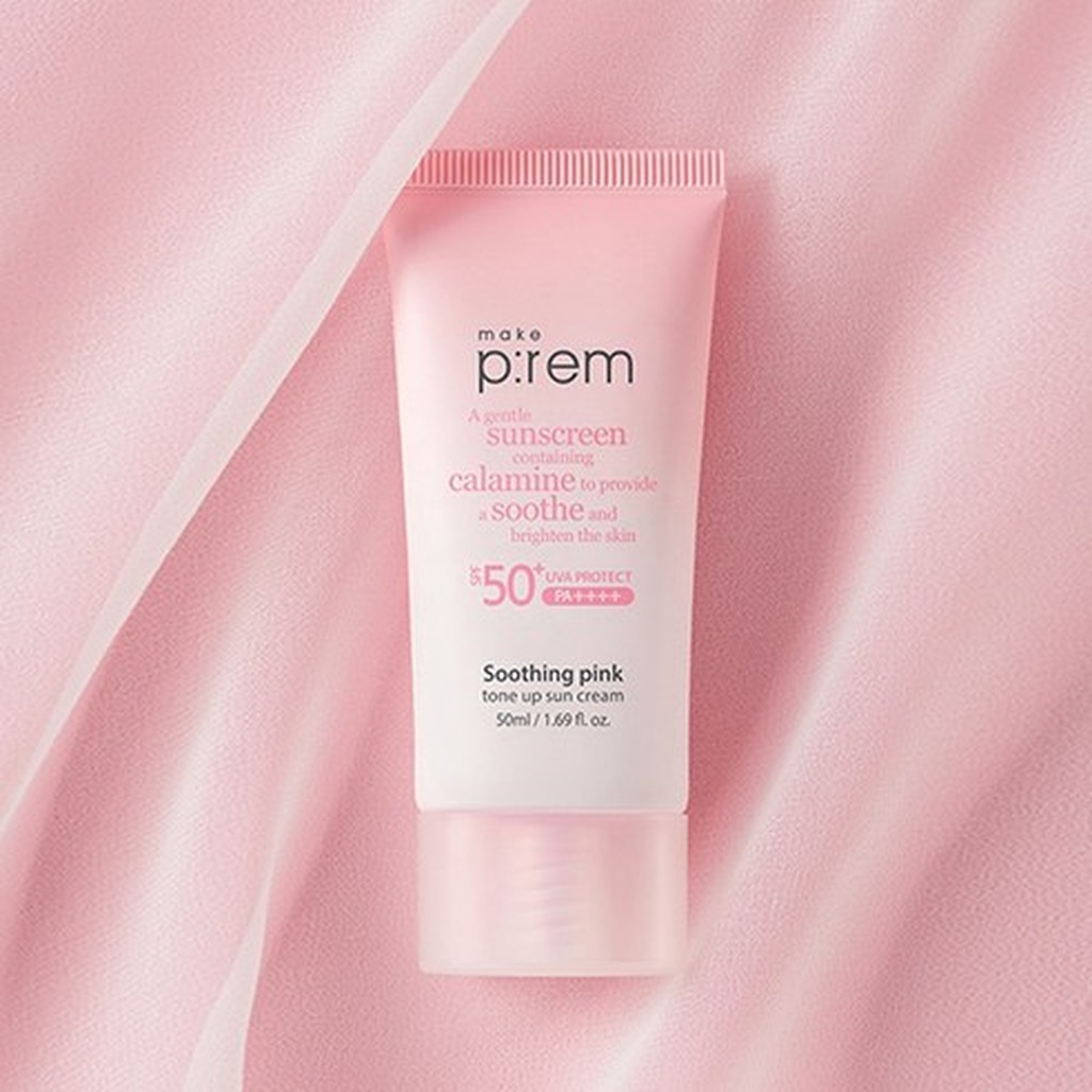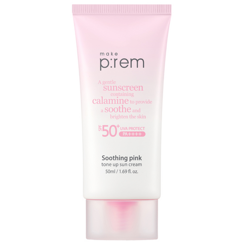make p:rem Soothing Pink Tone Up Sun Cream SPF50+ PA++++ – Gentle Calamine Sunscreen for Radiant, Brightened Skin