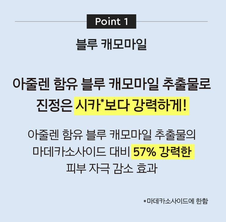 With blue chamomile extract containing azulene, calming is stronger than cica*!