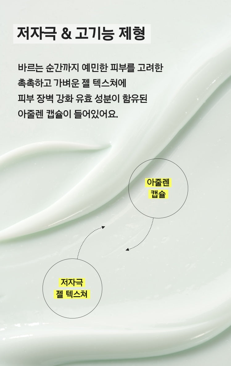 It contains azulene capsules containing active ingredients for strengthening the skin barrier in a moist and light gel texture considering sensitive skin until the moment of application.