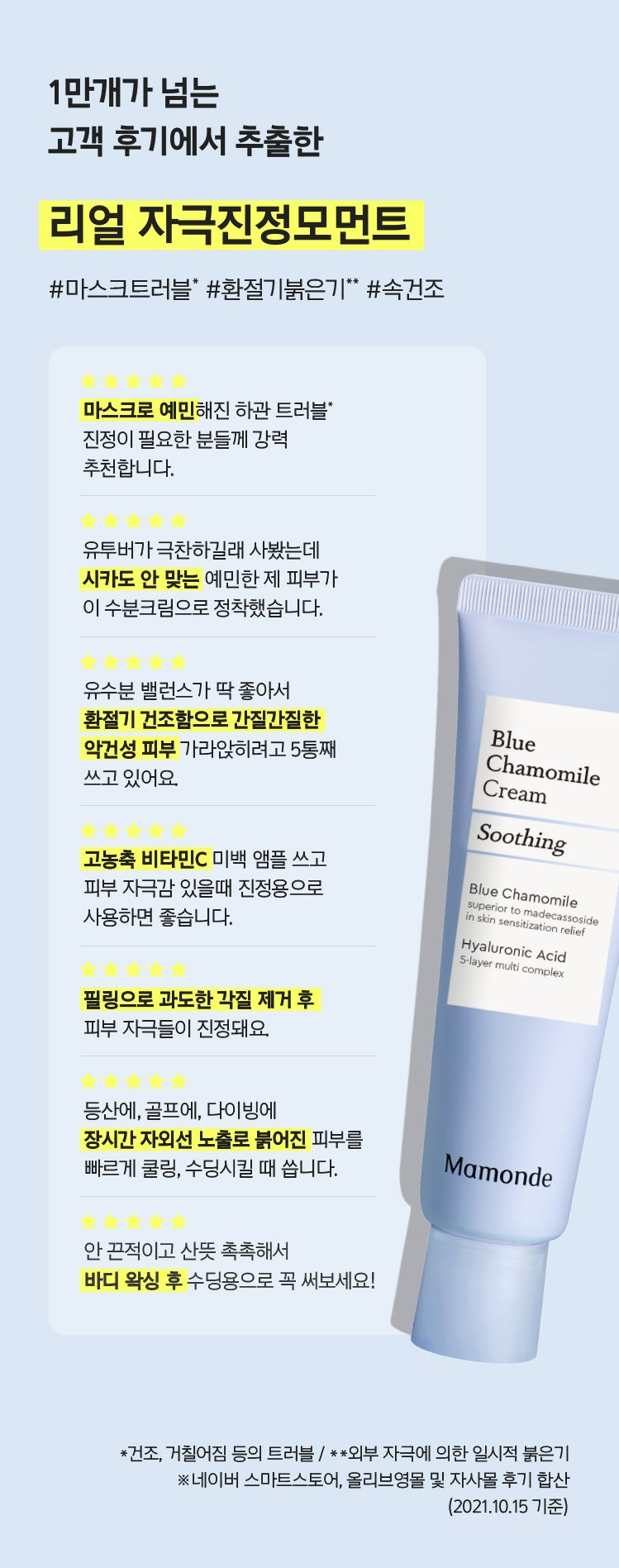 After 4 years of using other companies’ products, I recently realized that there were problems, so I bought the Blue Cream, and I really like it. I’ll take it as a life item, and when it’s discontinued, I’ll hate Mamonde!
