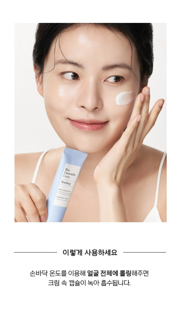 Blue chamomile, stronger than cica*, and hyaluronic acid complex that penetrates deep into the skin