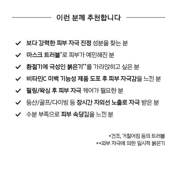 It is recommended to use the highly concentrated vitamin C whitening ampoule for soothing skin irritation.