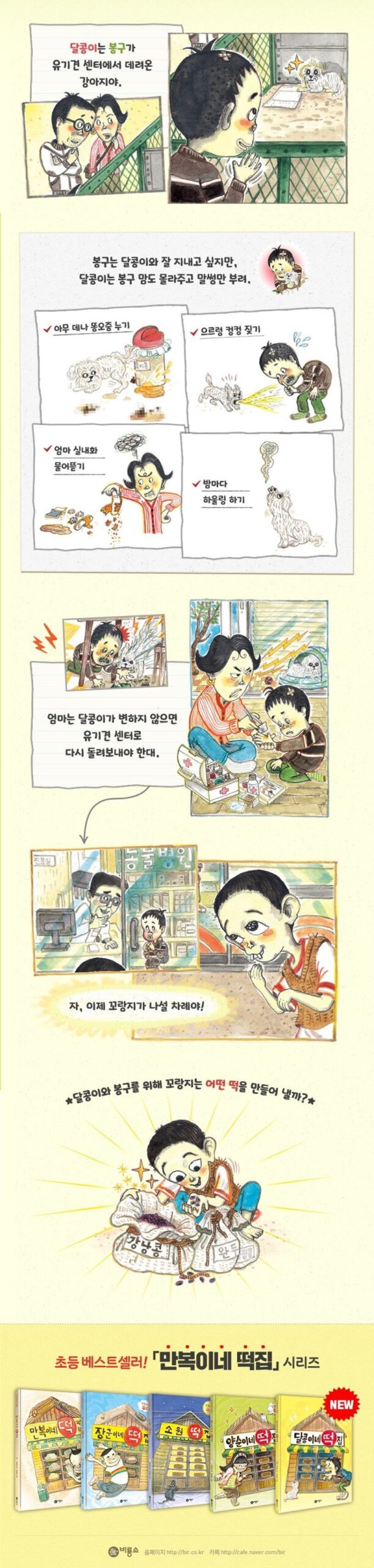 Contrary to his own mind, Man-bok always has bad words and actions. Of course, schoolmates tend to avoid Manbok like that. Then one day, Man-bok finds a strange rice cake shop on his way home. It is ‘Manbok’s Rice Cake House’. Man-bok is fascinated by the same name as himself and is drawn to the sweet and savory smell of the rice cake shop. But each rice cake has a strange price tag attached to it! To eat wind rice cake, you need to do two good deeds, and to eat mugwort rice cake, you need forty-two children’s laughter. Man-bok, who has never done anything good, must have no owner anyway. He sneakily picks up the rice cake, but, well, the rice cake disappears before his eyes.