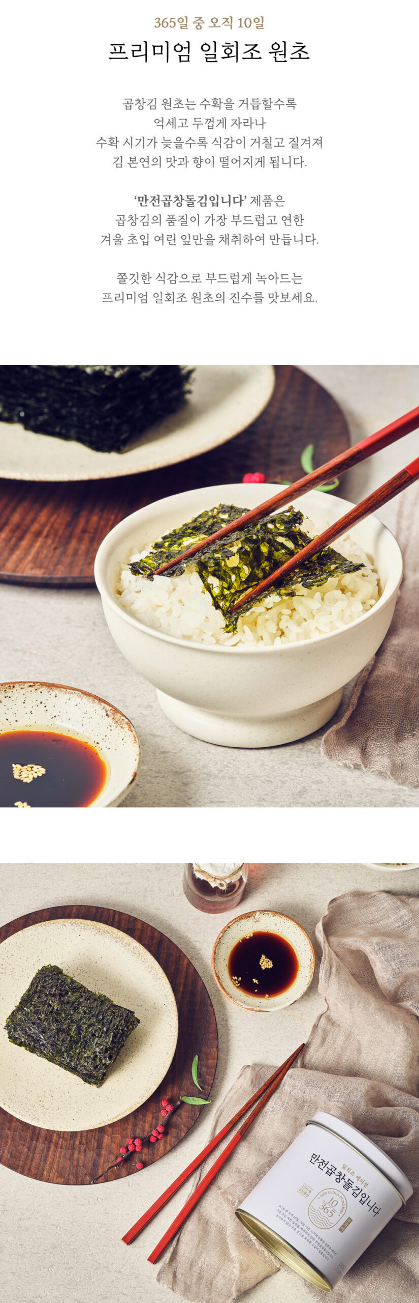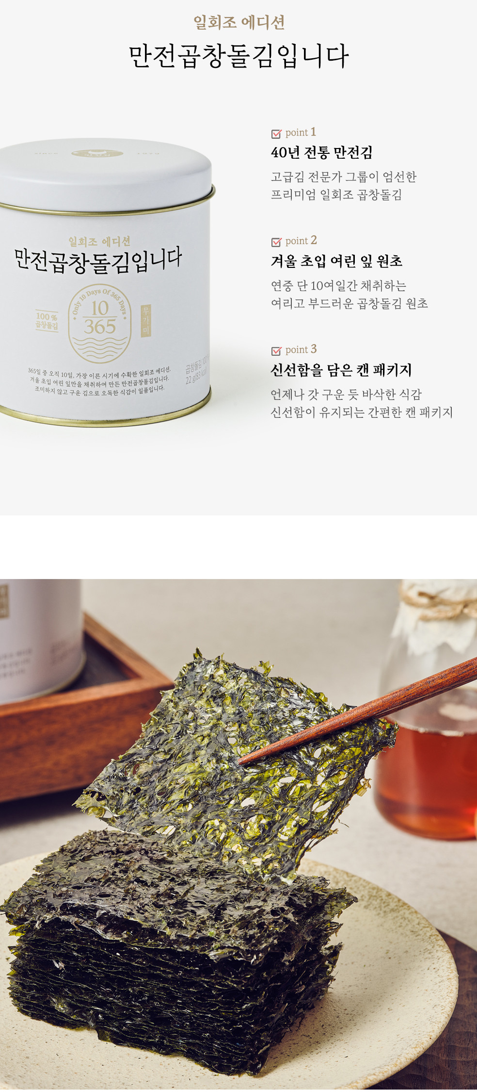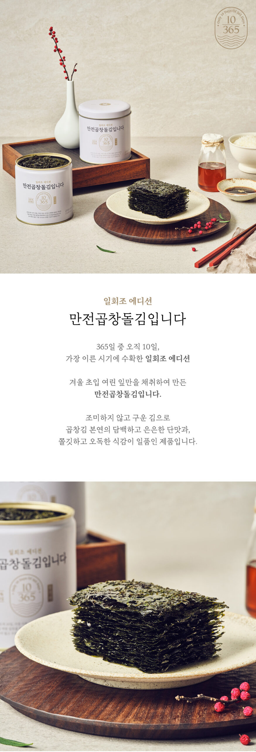Experience the exquisite taste of MANJUN Gopchang Dolkim, a premium seaweed harvested during the earliest days of winter. Carefully selected from the first harvest (Ilhoejo) young leaves, this limited-edition seaweed is available for only 10 days out of the year.