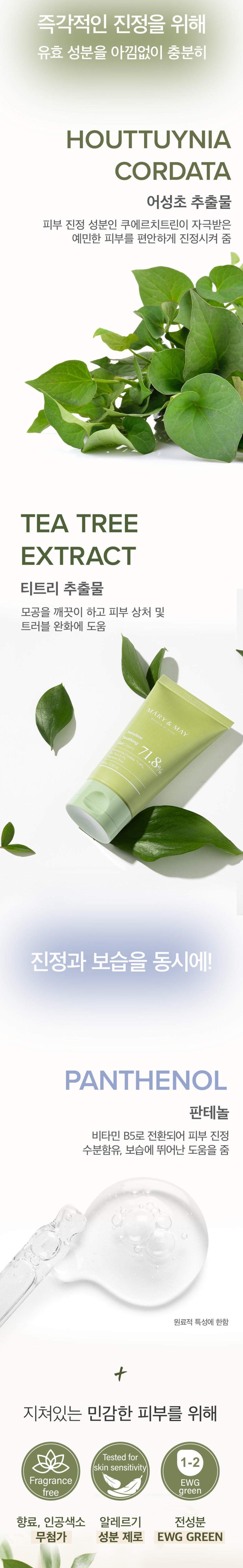 Experience the calming embrace of Mary&May’s Sensitive Soothing Gel Cream. This gentle, translucent gel cream is expertly crafted with 71.8% Houttuynia Cordata and 9.7% Tea Tree Extract, designed specifically to comfort troubled and sensitive skin.