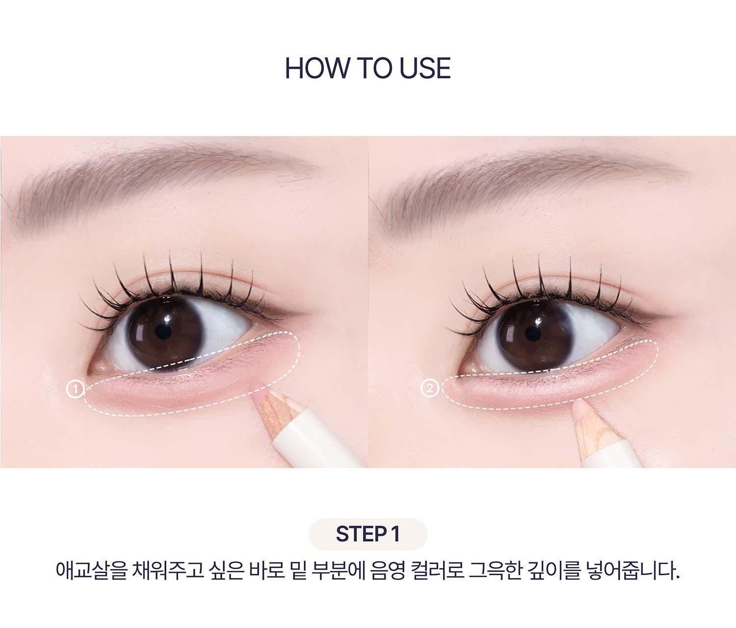 - Fill in the eye underline area and the eye mucosa with a bright shade to open up your eyes. Add depth by shading the eye underline shadow and the triangle zone to create a cool, three-dimensional look.