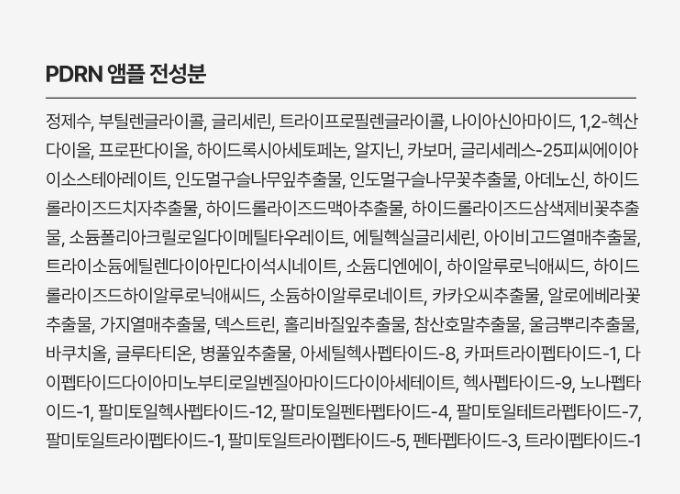 - Advanced 3rd Generation PDRN: Derived from fermented microorganisms, this next-level PDRN is superior to both salmon-based PDRN and plant-derived PDRN.