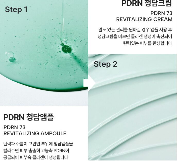 3️⃣ Follow with PDRN 73 Cream for intensive skin density and elasticity care.