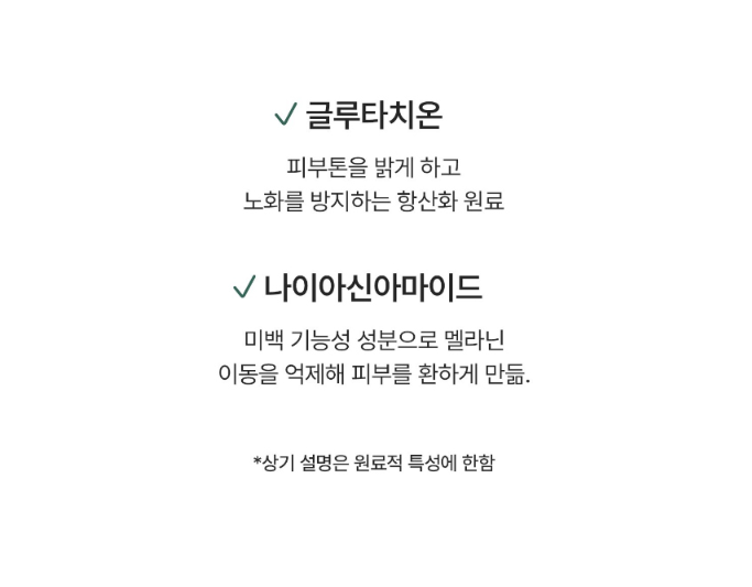 - Niacinamide: A whitening functional ingredient that reduces melanin movement for an even skin tone.