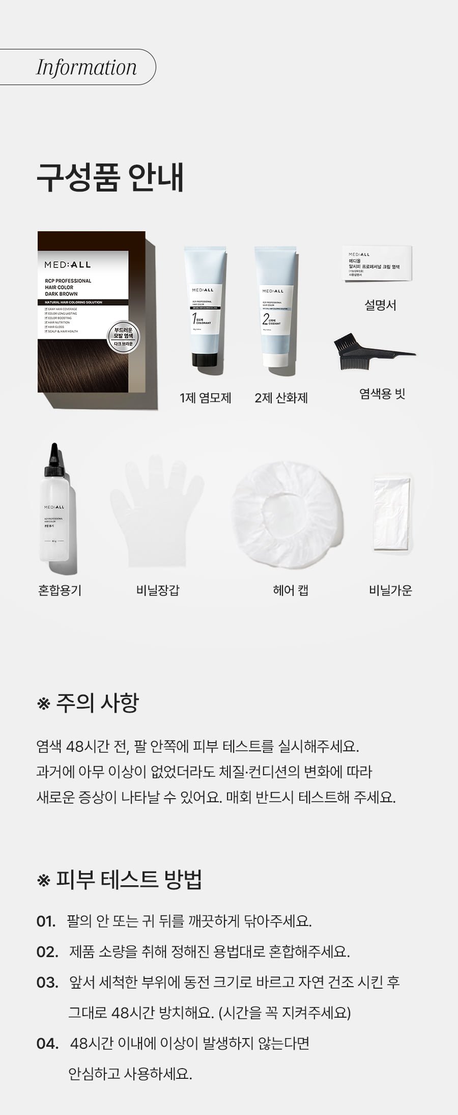 Transform your hair coloring experience with MED:ALL RCP Professional Hair Color. Designed to deliver exceptional results without the usual irritation, this low-irritation gray hair dye nourishes your hair, leaving it shiny and soft post-coloring. Perfect for sensitive scalps, this product prioritizes both beauty and care.