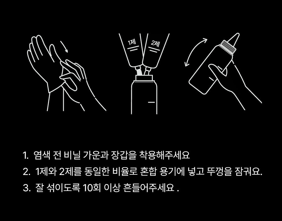 - Mix an equal amount of the developer and cream dye in the provided container. Shake thoroughly.
