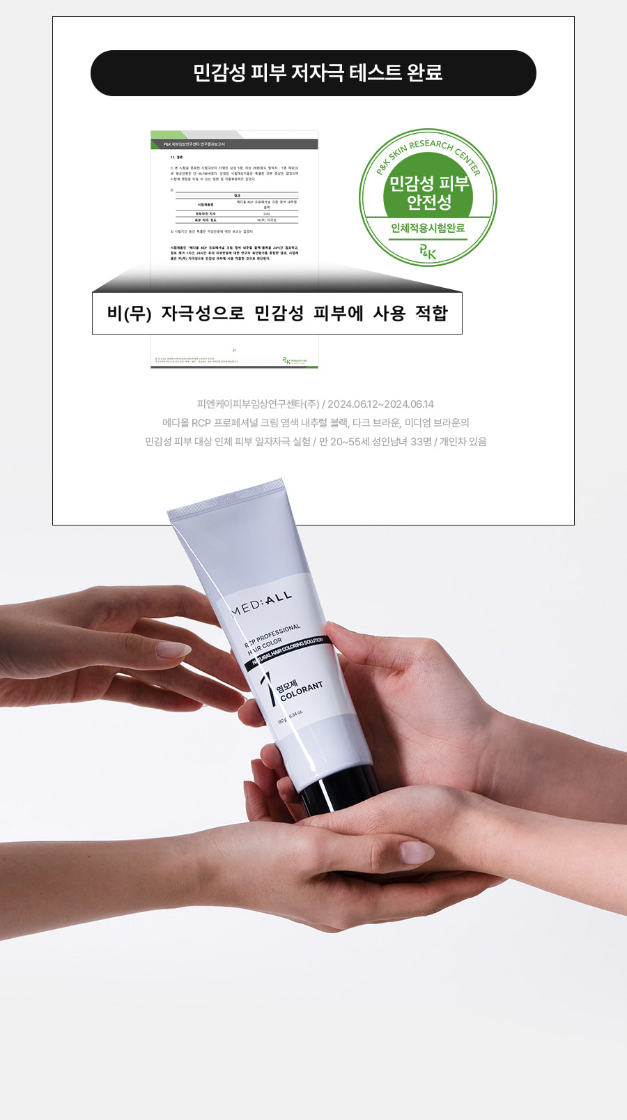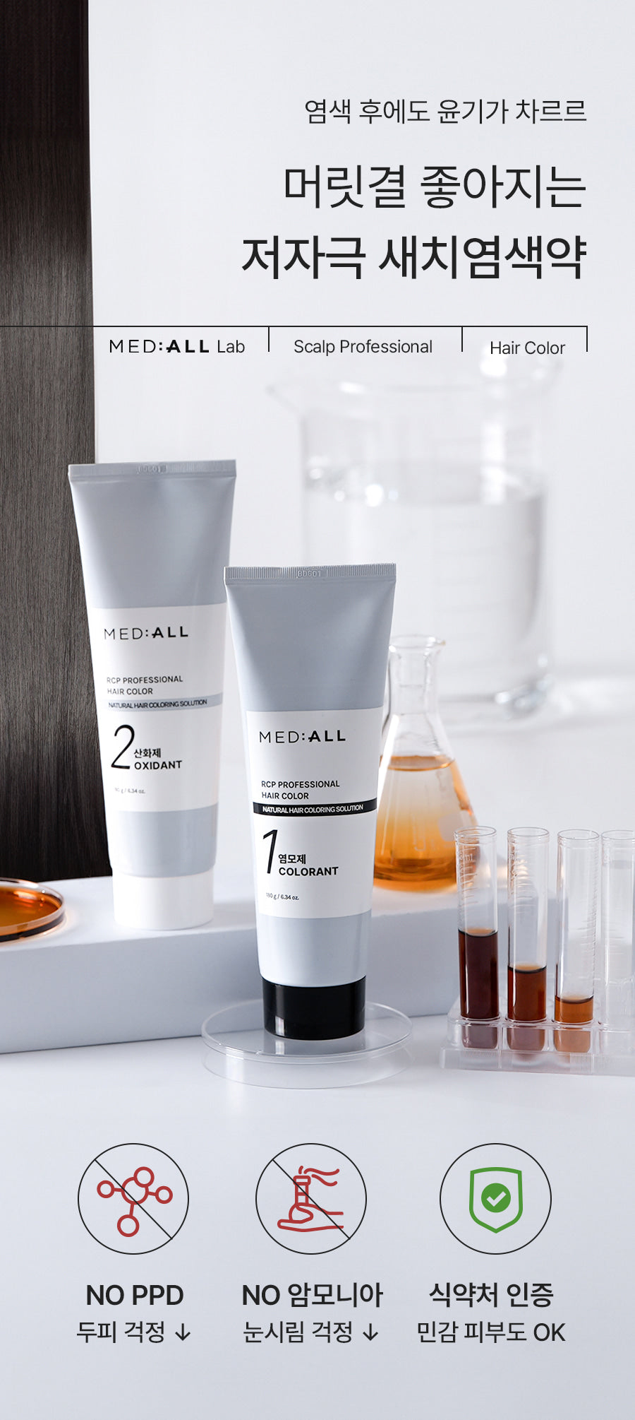 Transform your hair coloring experience with MED:ALL RCP Professional Hair Color. Designed to deliver exceptional results without the usual irritation, this low-irritation gray hair dye nourishes your hair, leaving it shiny and soft post-coloring. Perfect for sensitive scalps, this product prioritizes both beauty and care.