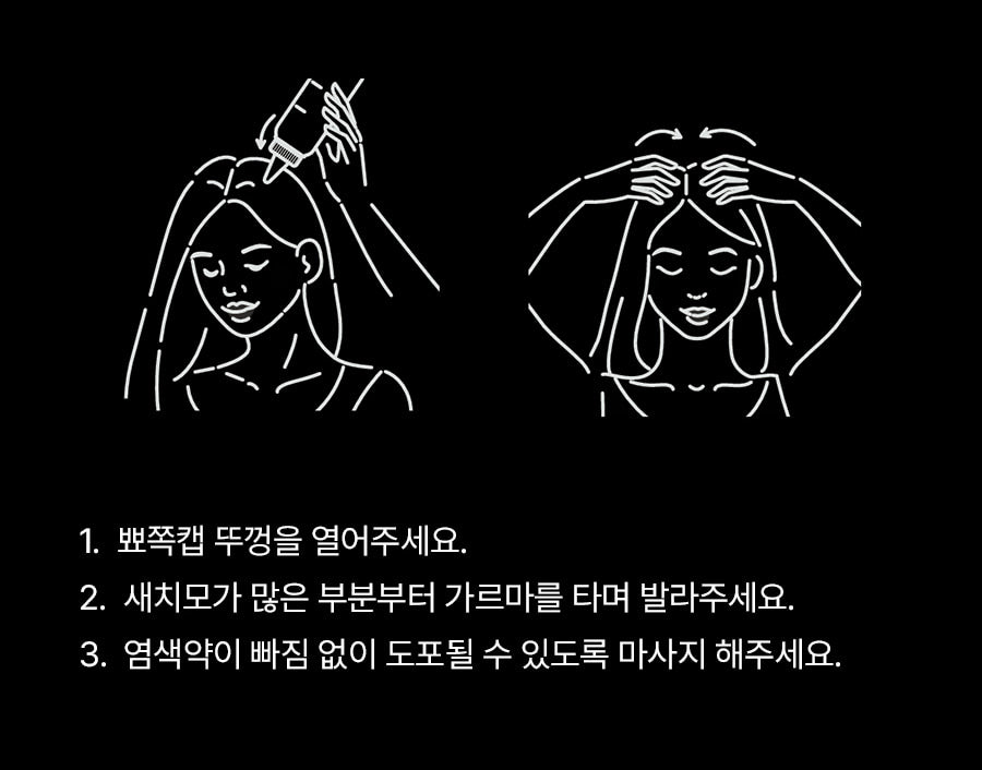 - Use the nozzle cap to apply the dye, starting with areas that have the most gray.