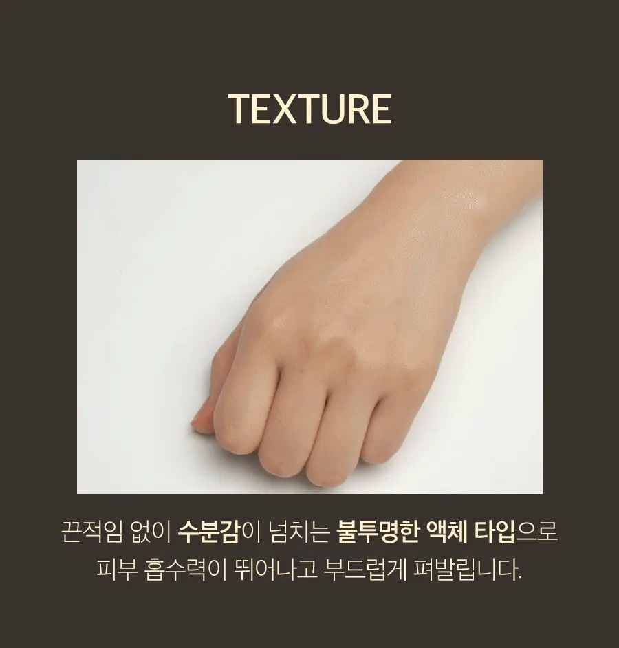 - Adenosine: As a functional ingredient officially recognized by the KFDA for wrinkle improvement, Adenosine meticulously addresses various wrinkles caused by the passage of time.