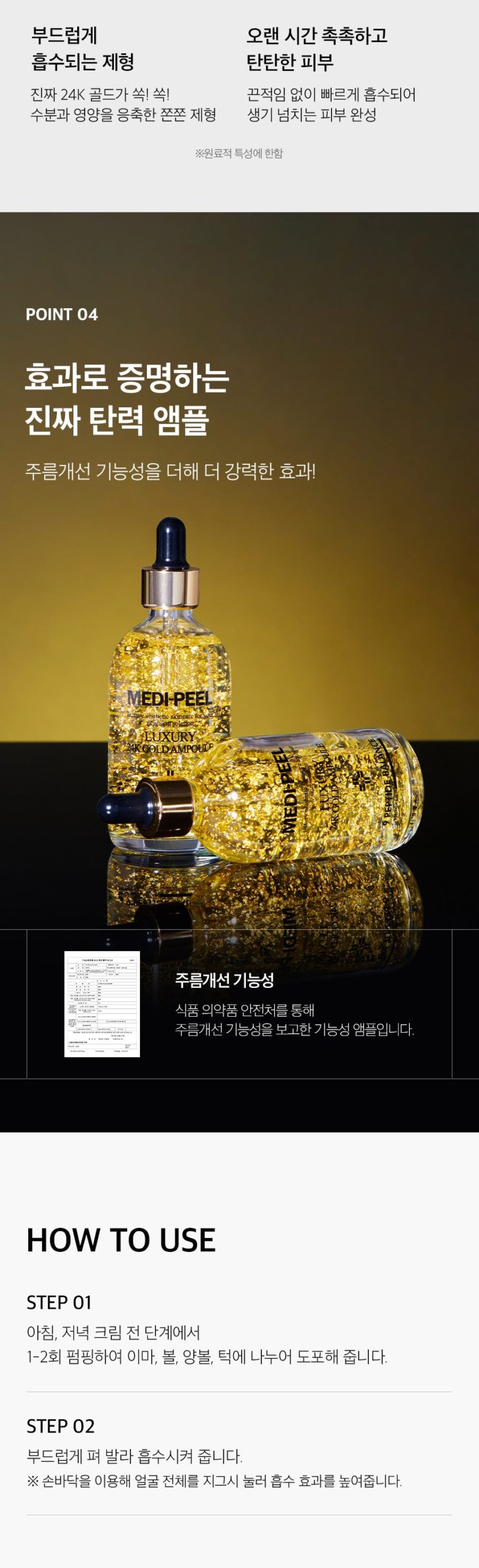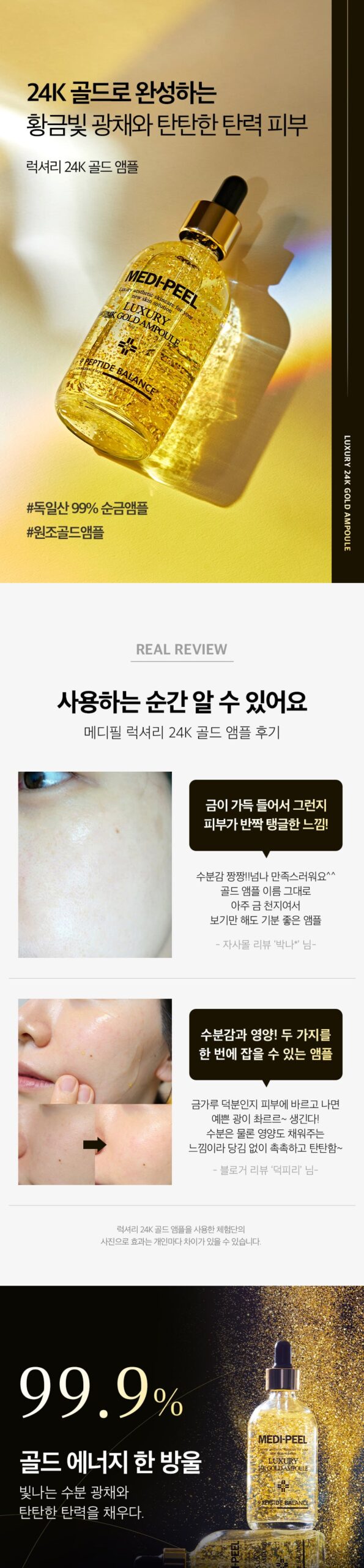 Experience the opulence of MEDI-PEEL Luxury 24K Gold Ampoule, featuring 99% pure gold sourced from Germany. This premium ampoule is designed to deliver intense hydration and elasticity, revitalizing and brightening your skin.