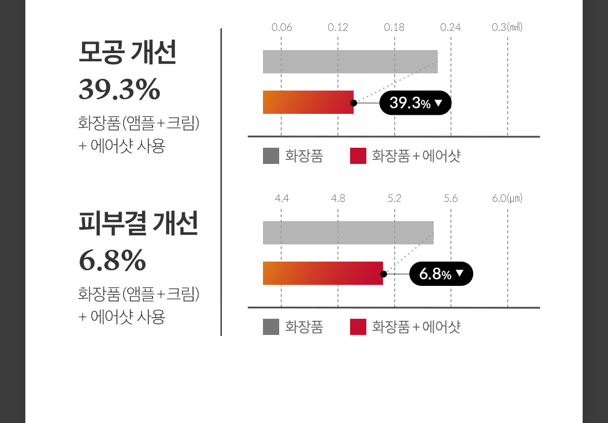 – Clear effect of Airshot on pores, skin texture (unevenness), dead skin cells, glow, moisture