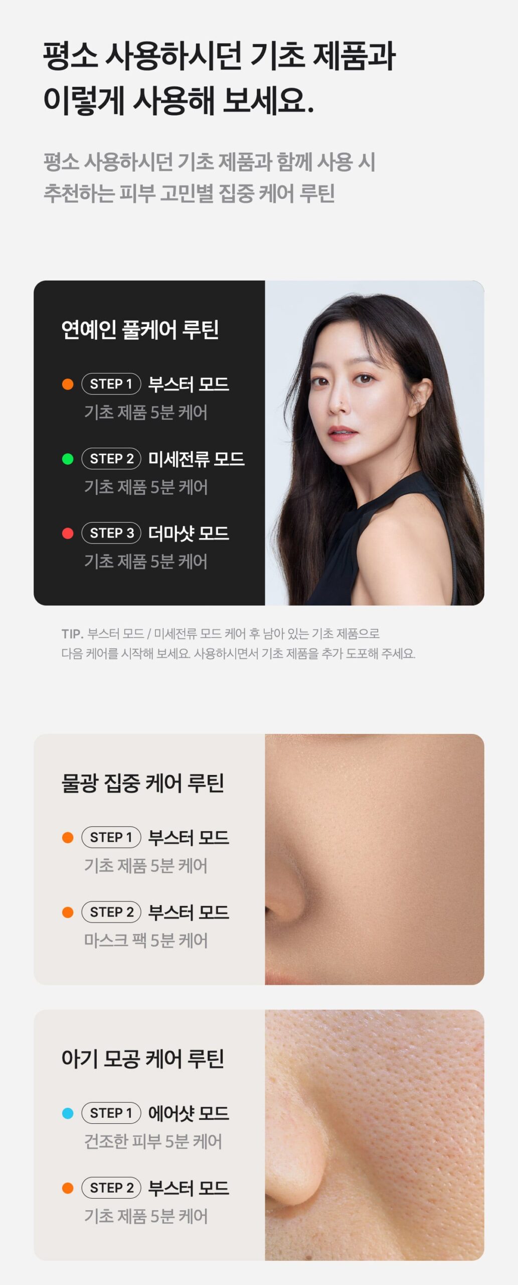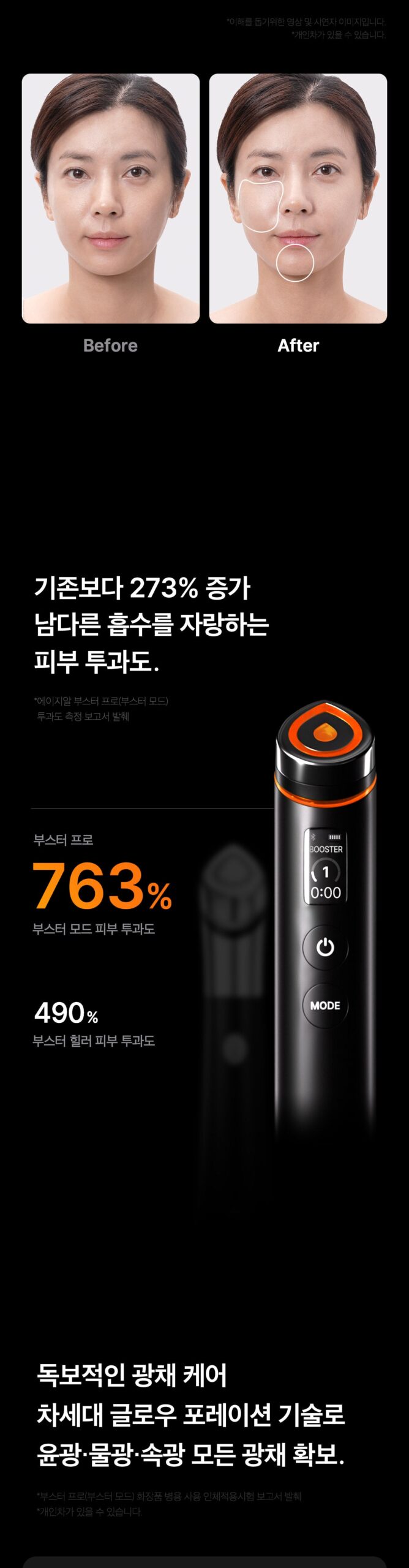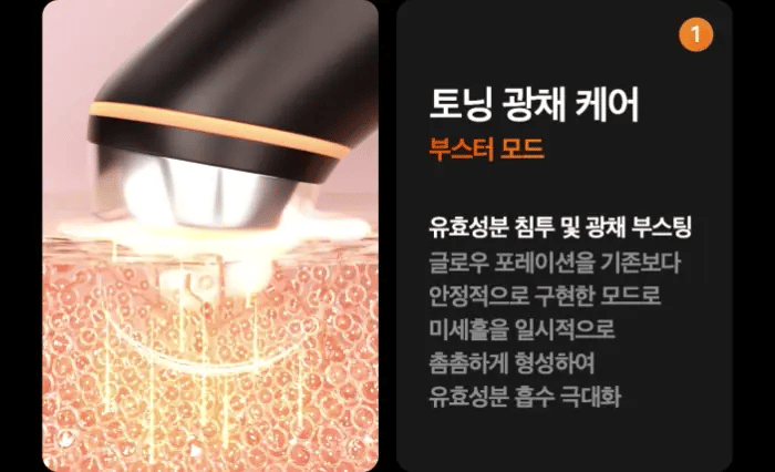 - Booster Pro uses unipolar pore poration technology, ensuring convenient and precise care without pain.