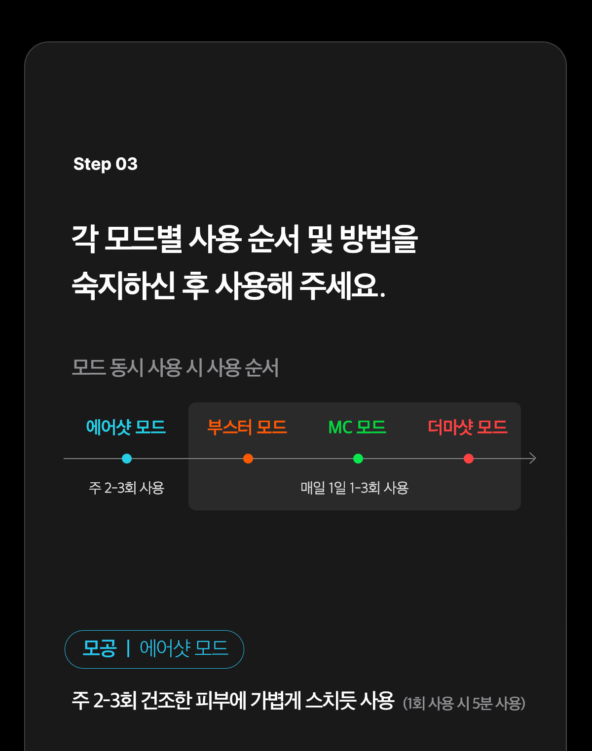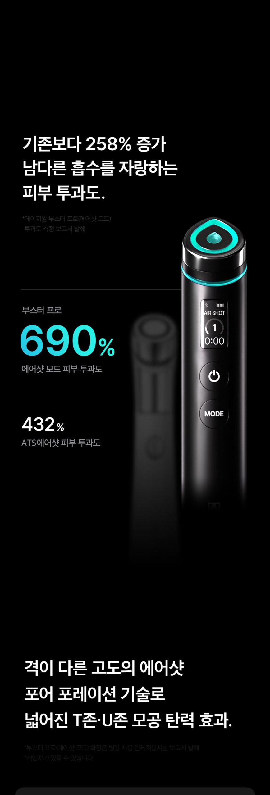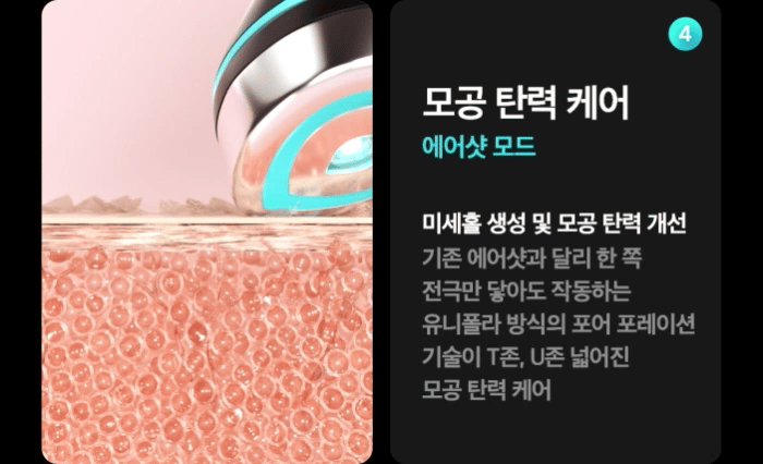 - Pore Elasticity Care (Air Shot Mode): Creates fine holes, improving pore elasticity for a smoother complexion.