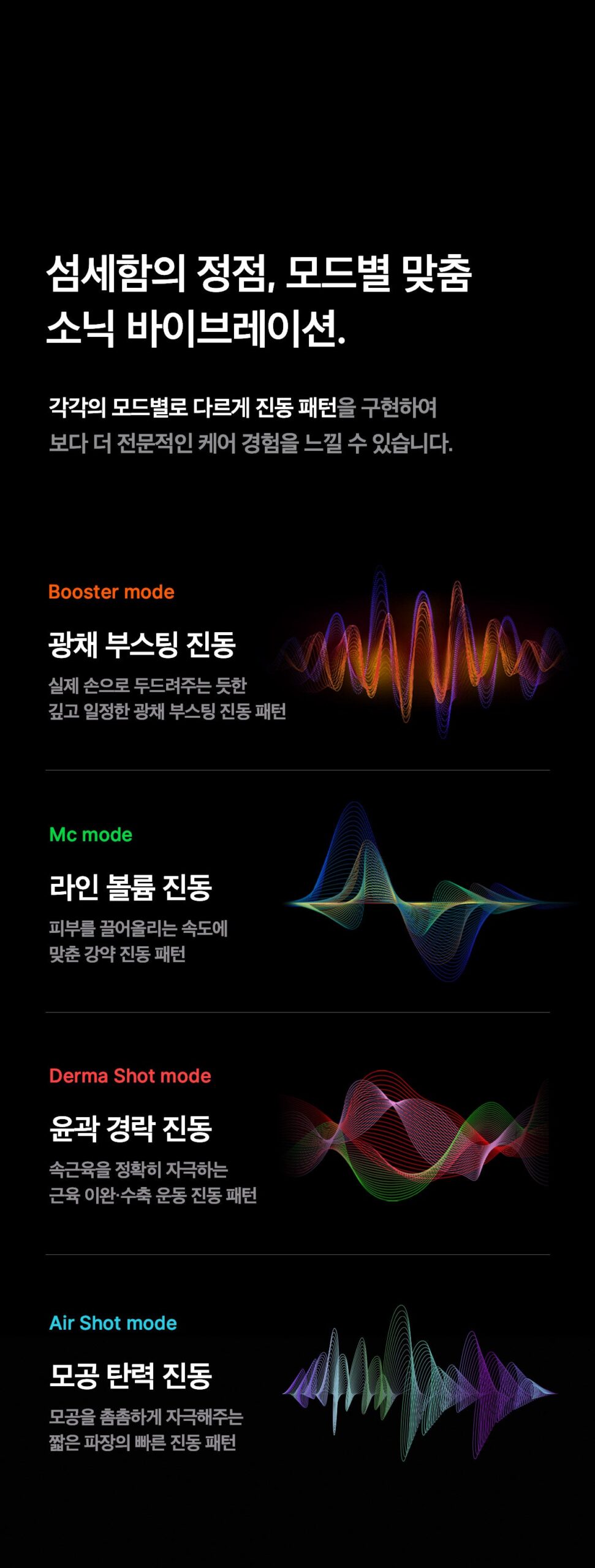- Contour Elasticity Care (Derma Shot Mode): Stimulates facial muscles, improving muscle contraction and elasticity.