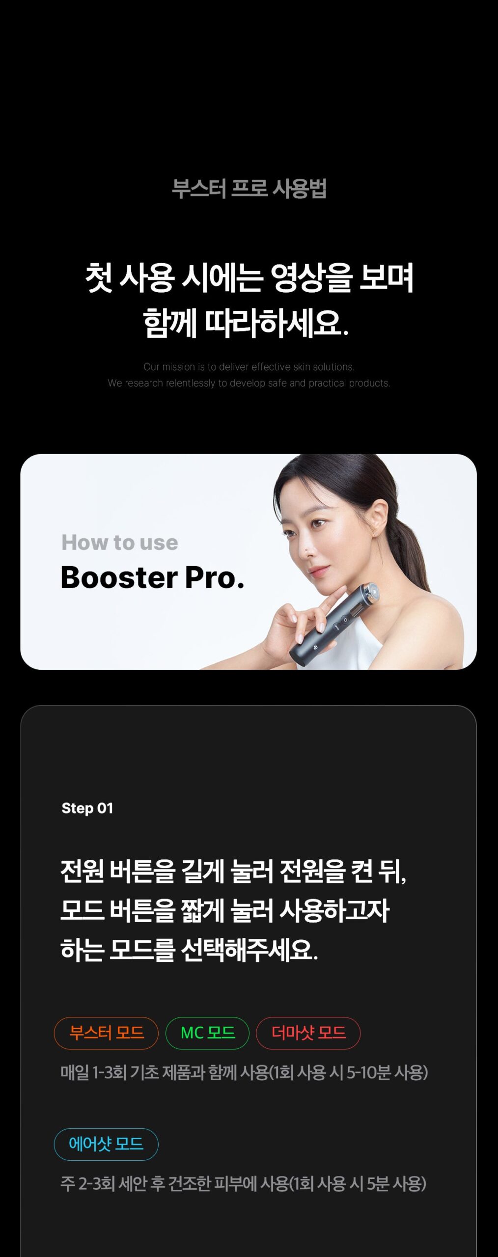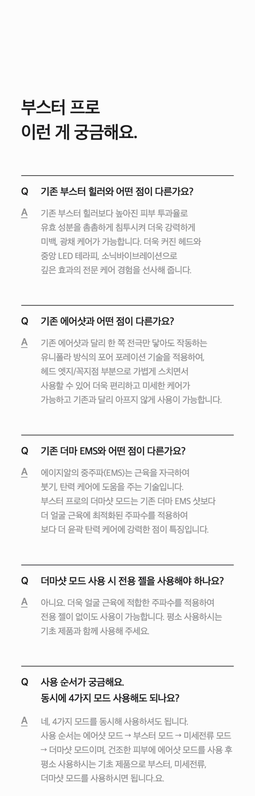 - Booster Pro’s Derma Shot mode offers more powerful contour elasticity care with optimized facial muscle stimulation.