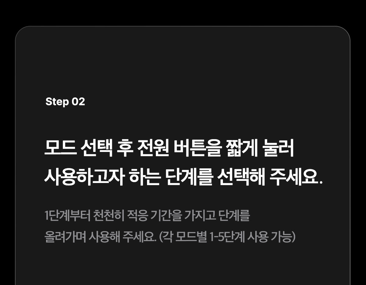 - Adjust Level: Use the power button to set the desired level (Steps 1-5 available for each mode).