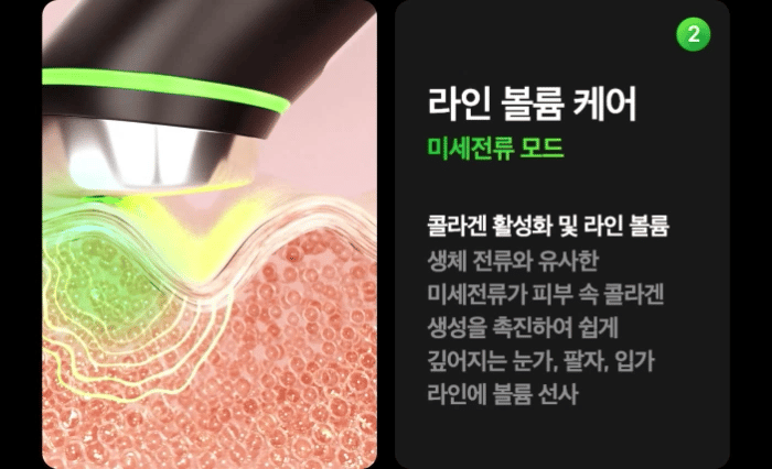 - Line Volume Care (Microcurrent Mode): Activates collagen production, adding volume to lines around the eyes and mouth.