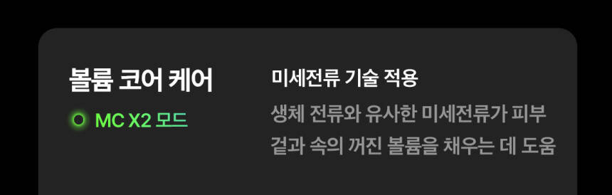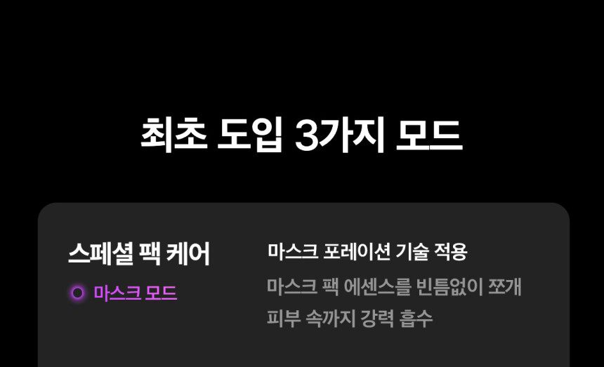 - MASK Mode: Elevate your sheet mask experience to new heights. This mode helps active ingredients from your masks penetrate more effectively, boosting hydration, nourishment, and overall mask performance.