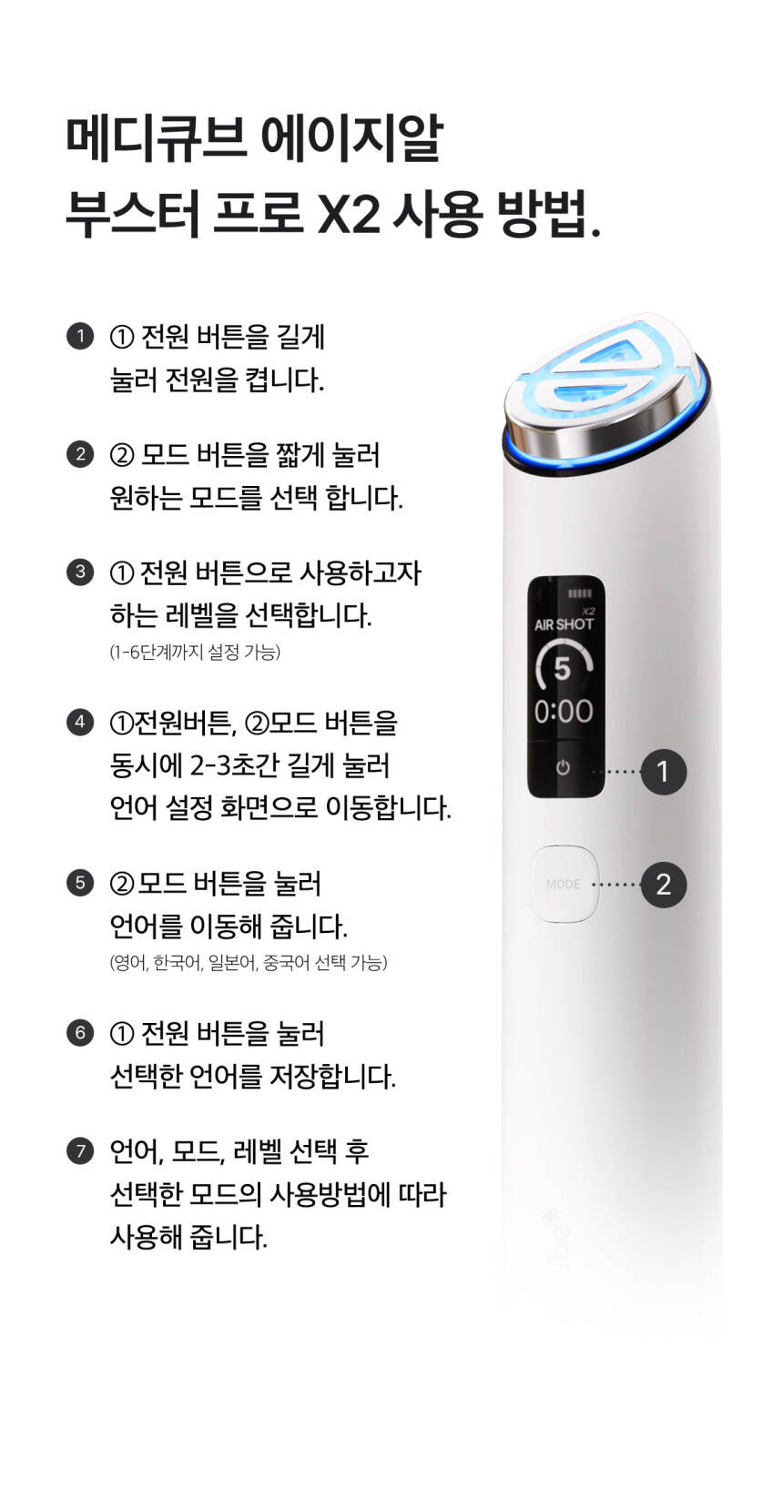 The MEDICUBE AGE-R Booster Prox2 integrates state-of-the-art technology to provide a comprehensive and personalized skincare experience. Its intuitive design features distinct modes, each crafted to address specific skin concerns and maximize the benefits of your routine.