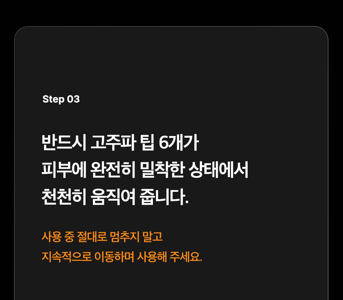 A: Ensure that all six high-frequency tips are making contact with your skin. The device only delivers maximum energy when all tips are in full contact. If you’re moving the device too slowly or if it pauses, it may automatically adjust the energy output for safety. Keep moving the device slowly and steadily for optimal results.