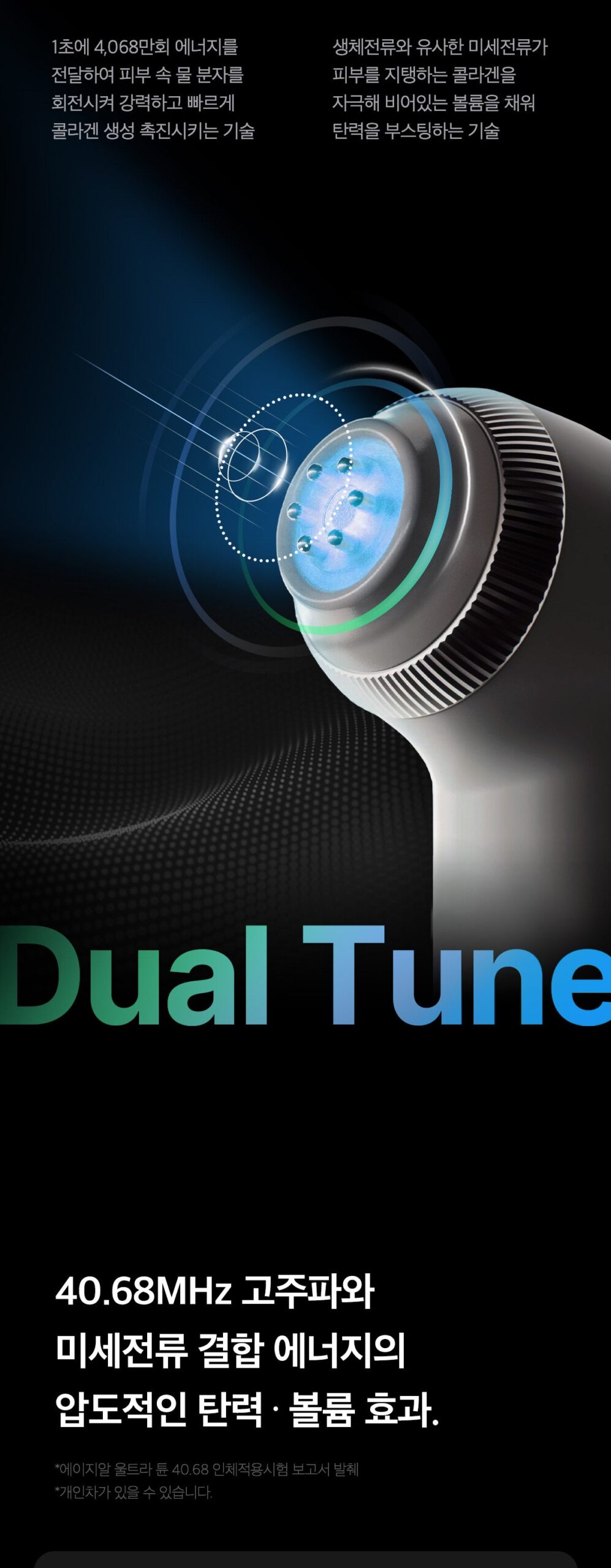Dielectric heating, which occurs at frequencies above 10MHz, involves friction from the rapid rotation of water molecules. The advantage of dielectric heating is its ability to provide quick and uniform heating. Unlike lower frequencies that rely on skin resistance to generate heat, UltraTune uses a frequency of 40.68MHz to rotate water molecules in the dermis, resulting in targeted heat without energy loss.