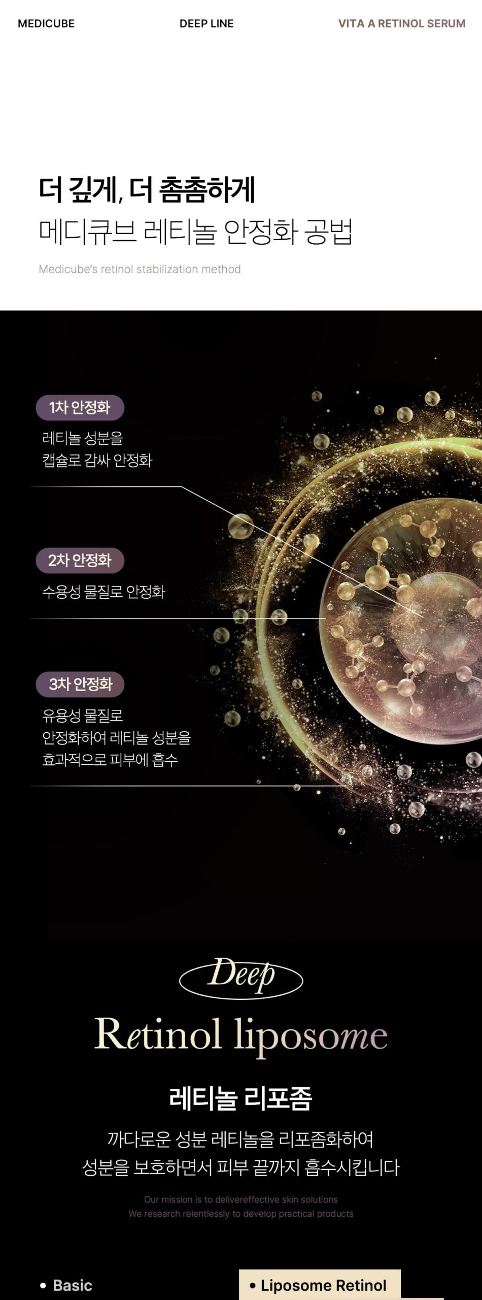 Our meticulous three-tiered stabilization process ensures the retinol’s potency and absorption, utilizing capsules, water-soluble substances, and oil-soluble substances for unparalleled delivery into the skin.